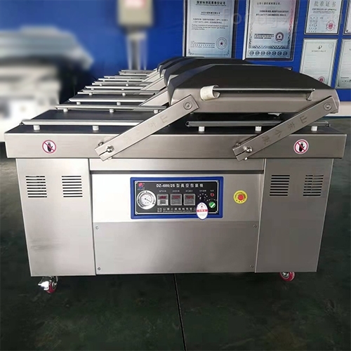 水产品双室真空包装机的主要作用是除氧,以有利于防止食品变质,HZ500/2SE真空包装机原理也比较简单,因食品霉腐变质主要由微生物的活动造成,而大多数微生物(如霉菌和酵母菌)的生存是需要氧气的,而HZ500/2SE真空包装机就是运用这个原理,把包装袋内和食品细胞内的氧气抽掉,使微生物失去“生存的环境