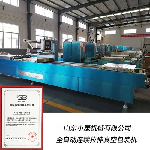 山东小康机械有限公司是国内的外商在中国投资生产真空包装机的生产企业,公司专门设计制造替代进口包装机产品为主。通过ISO9001:2015国际质量管理体系认证和CE认证,是中国真空包装机行业中,获取欧盟市场准入证的企业。几年来在国家技术质量抽检中名列前列,受国家质检总局委托起草编写了《全自动连续拉伸真空包装机国家标准》、《真空包装机国家新标准》